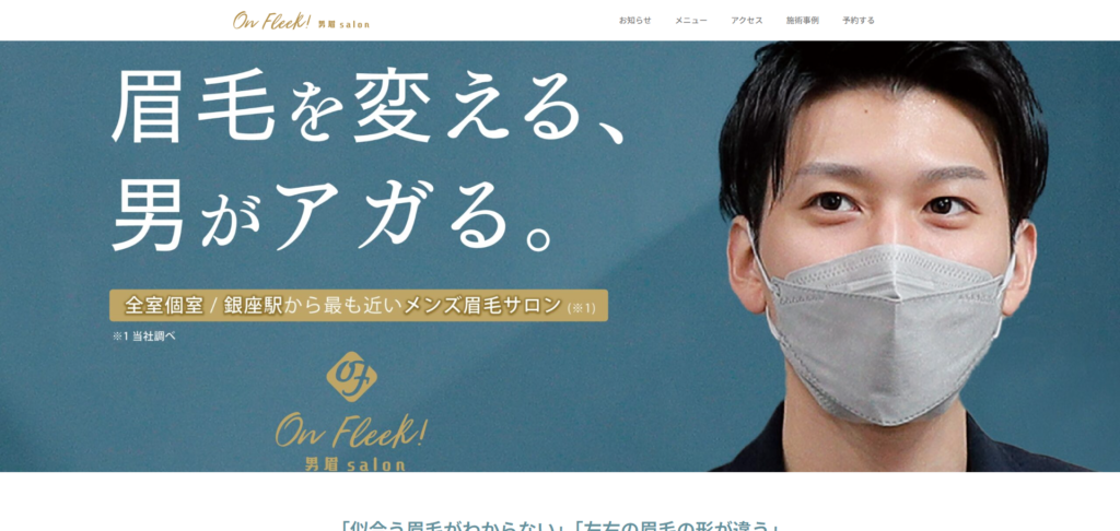 新宿エリアで高い人気を誇り、その実績を背景に銀座へ進出したメンズ眉毛専門サロンです。登録商標「メン眉」を軸に、自然で洗練されたメンズ眉毛という具体的な価値を提供しています。銀座一丁目駅10番・11番出口より30秒という抜群の立地で、忙しいビジネスマンでも気軽に立ち寄れます。