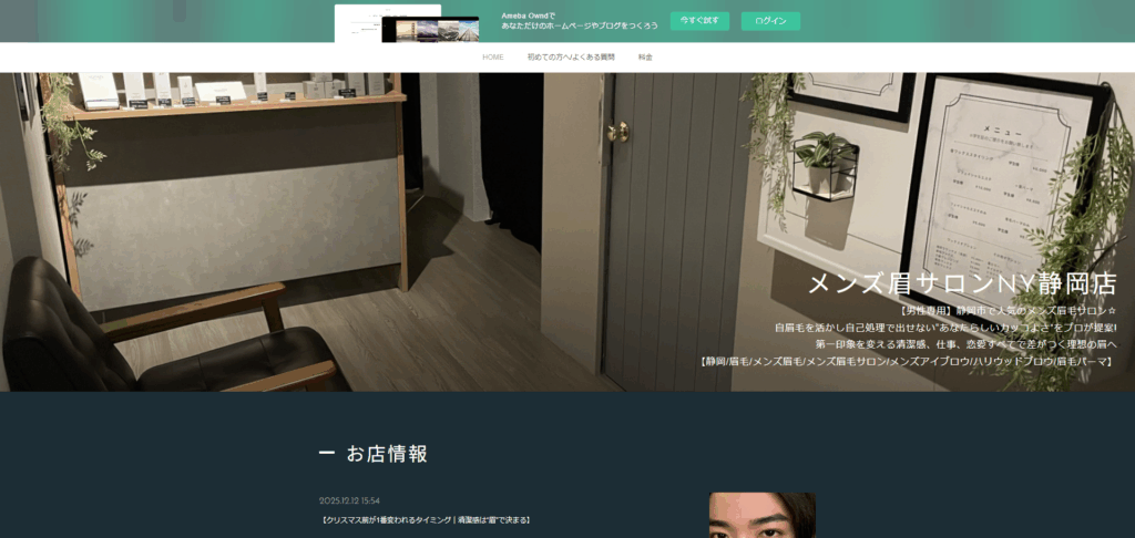 | 代表的なプラン | ・新規 men’s眉Wax:4,980円 ・新規 men’s HBL(ハリウッドブロウリフト):6,980円 |